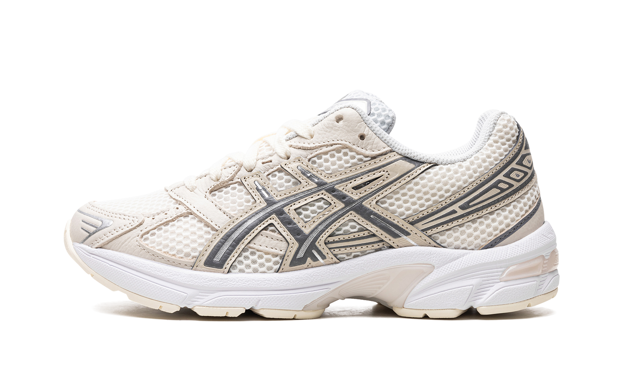 The Gel-1130 “Cream” is a neutral-based colorway of the retro running shoe. The Gel-1130 was originally released in 2008 and is one of the most popular sneakers fueling the Y2K trend in sneaker culture. The upper features a cream mesh base with silver and dark grey leather overlays. “” and “Gel-1130” branding are seen on the white mesh tongue. A techy-looking midsole with ’ signature Gel cushioning technology provides a comfortable ride.