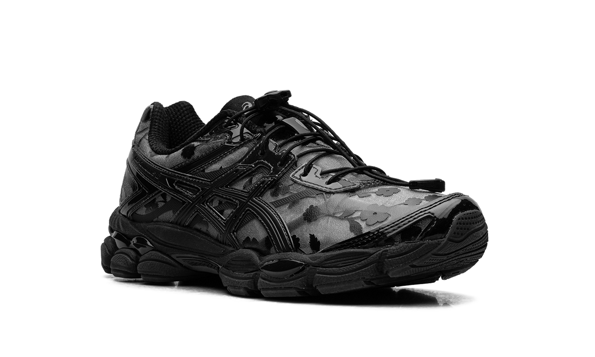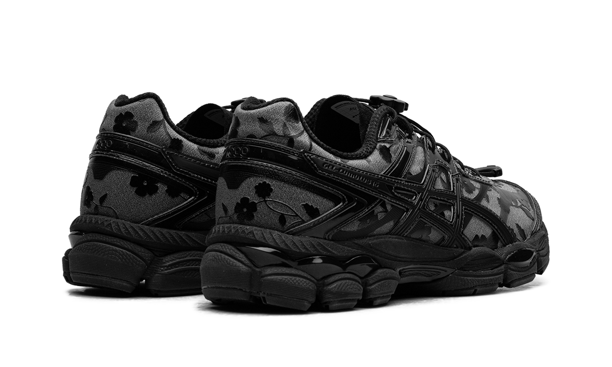 Dive into "Everyday Couture" with the GEL-CUMULUS 16 "Wmns Cecilie Bahnsen Black Black," a feminine reinterpretation of a classic runner. Danish designer Cecilie Bahnsen applies her signature touch with delicate floral-printed uppers and semi-transparent mesh layers, creating a stunning juxtaposition against the athletic silhouette. This "Signature Series" sneaker swaps traditional laces for a modern bungee cord system, accented by a playful flower lace toggle. Featuring GEL™ technology in the forefoot and heel, this shoe delivers signature comfort with a unique, high-fashion aesthetic.