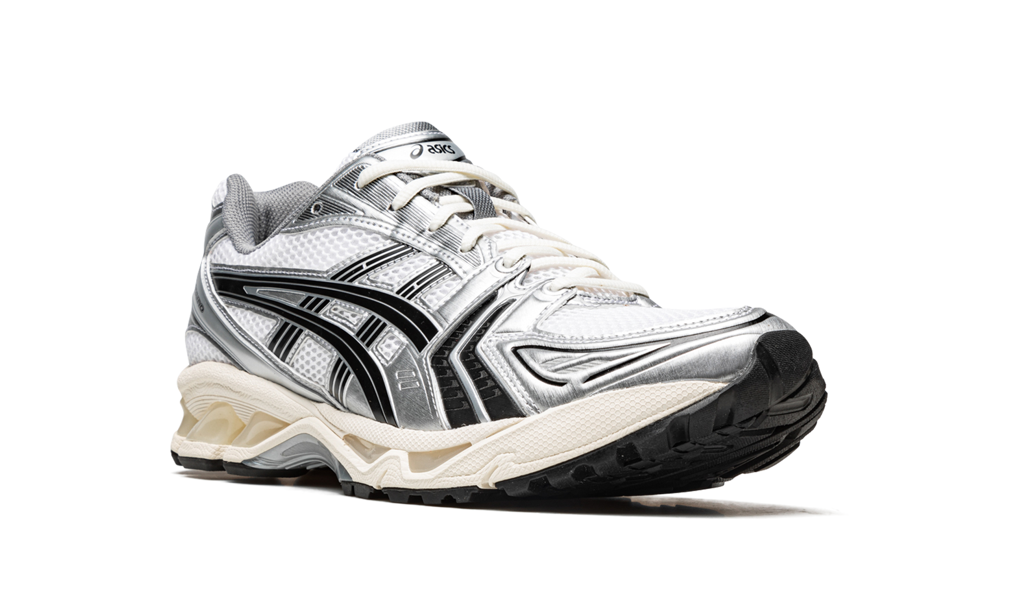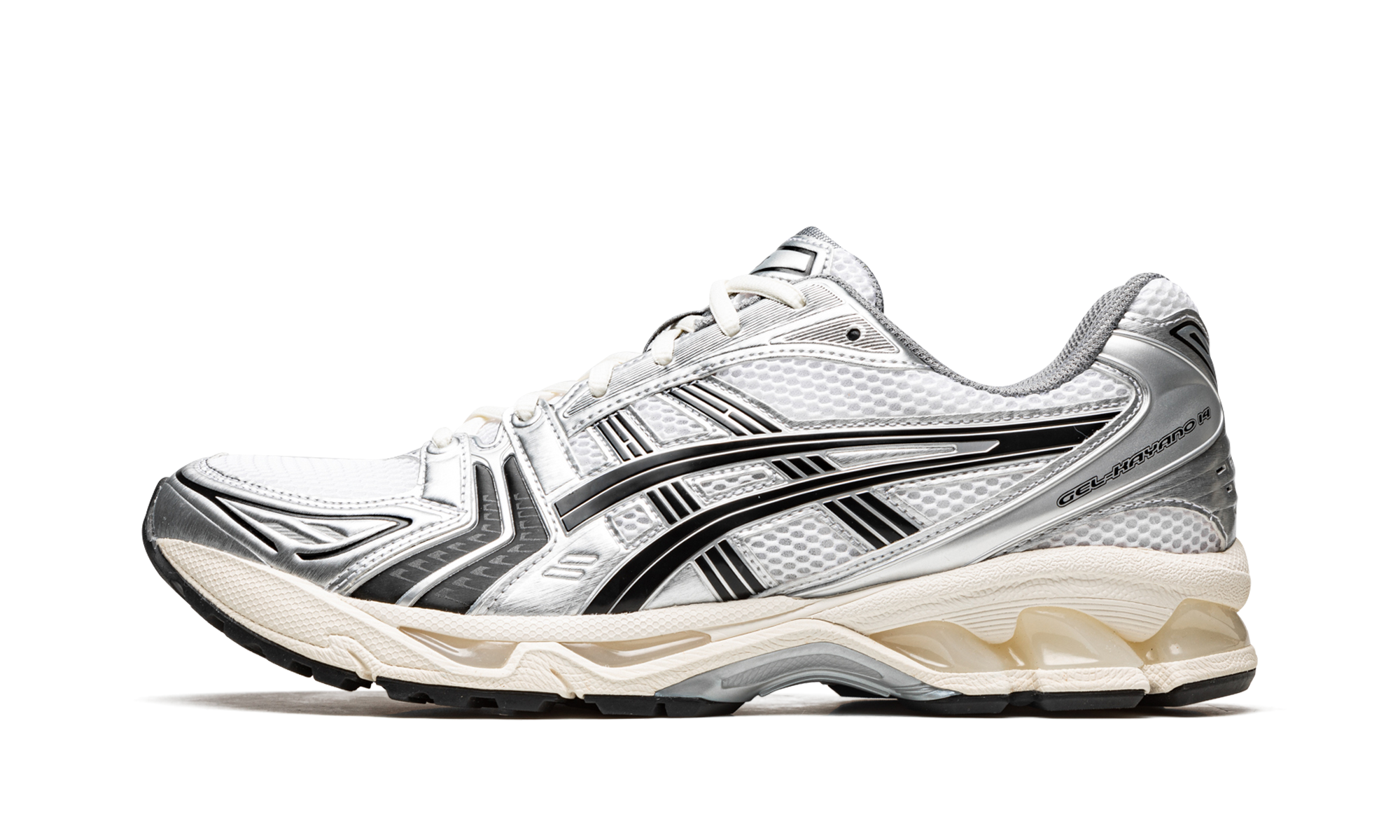 Discover the JJJJound x Gel-Kayano 14 "Silver/Black," the first collaboration between the Montreal design studio and . Designed in JJJJound's signature neutral-toned style, this shoe features a white mesh upper, Metallic Silver overlays, and black Tiger stripes. Mismatched "JJJJound" and " Gel-Kayano" branding adorns the heel, while a cream-colored midsole provides comfortable cushioning.