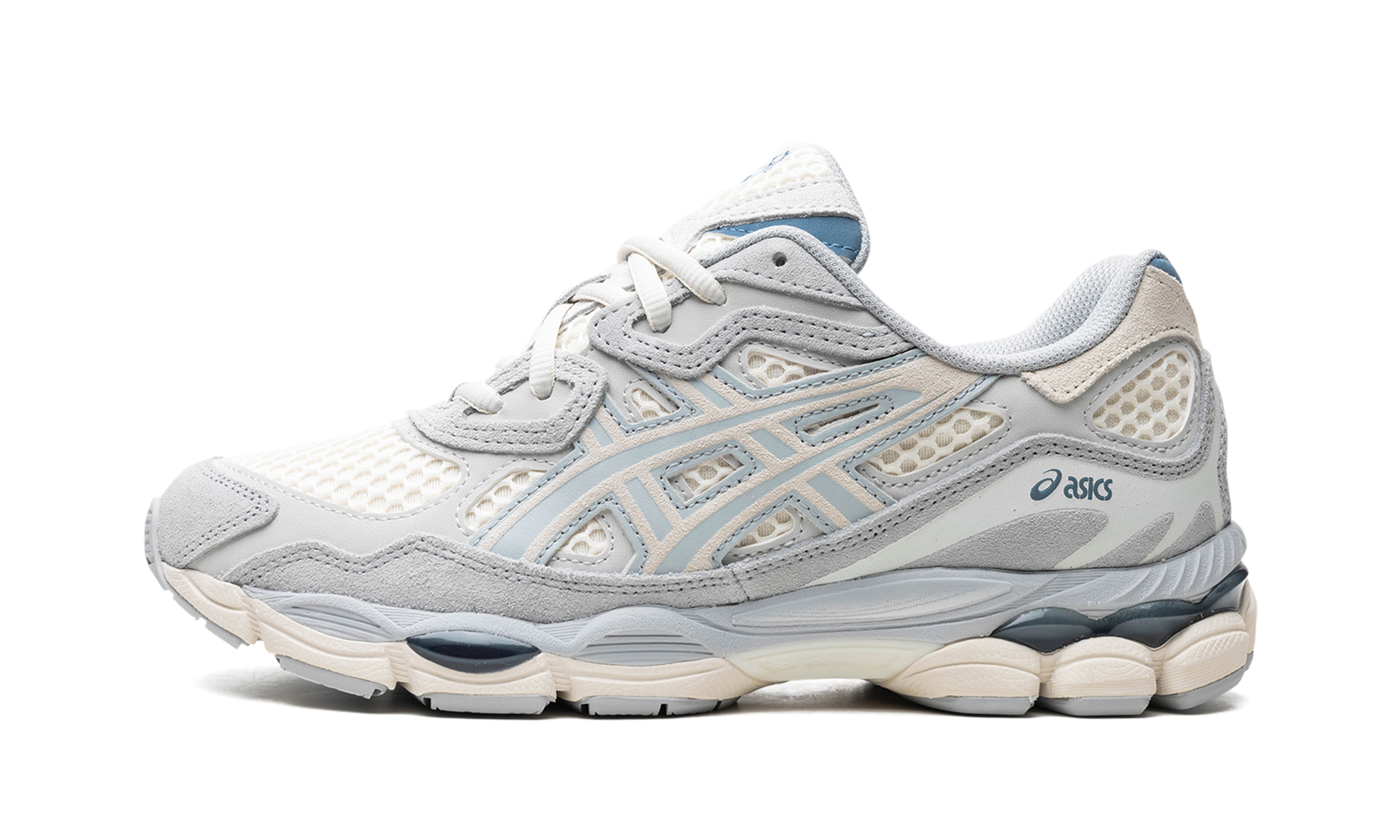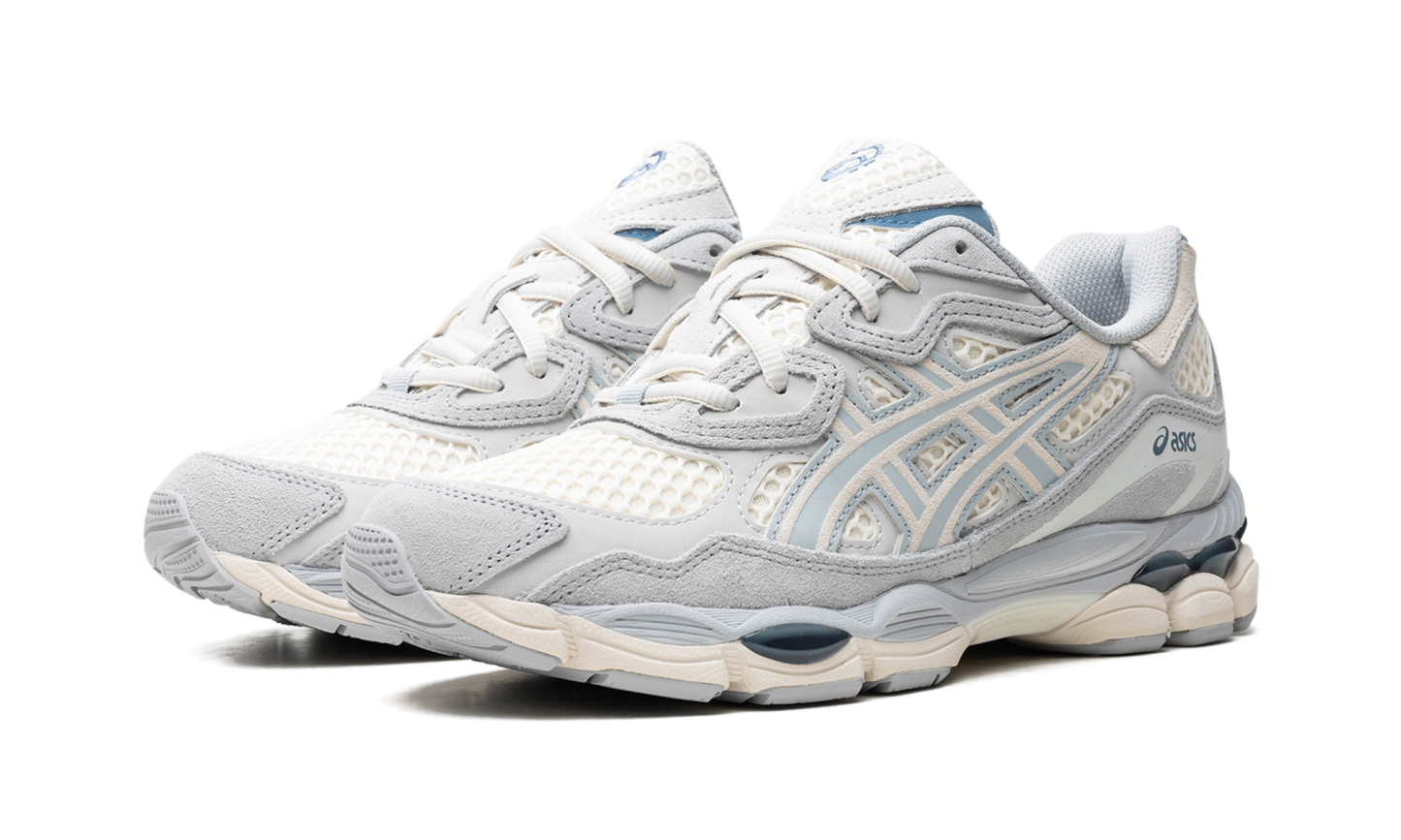 The Gel-NYC "Ivory/Mid Grey" is a colorway of the retro-inspired lifestyle shoe with an eye-pleasing design. Inspired by various archival sneakers, the Gel-NYC has an early-to-mid 2000s-era retro running shoe look that fits within the Y2K sneaker trend. On the “Ivory/Mid Grey” colorway, the shoe has an Ivory open-mesh base contrasted with Mid Grey overlays and “tiger” stripes. The shoe features tooling from the GEL-CUMULUS 16 running shoe with visible Gel cushioning.