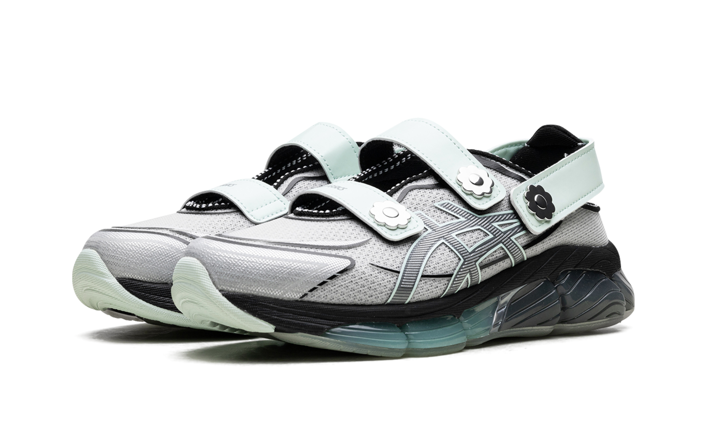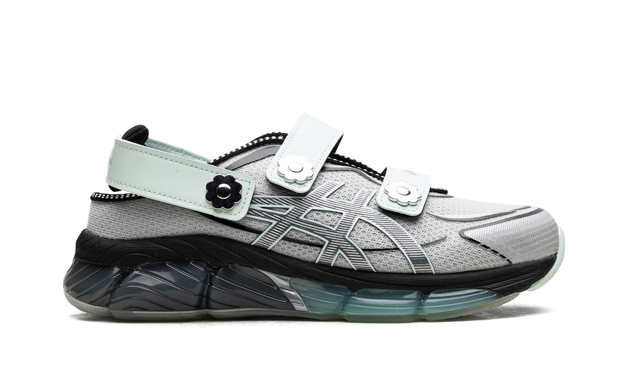 Dare to fuse performance with high fashion in the extraordinary GEL-QUANTUM 360 VIII, a visionary collaboration known as "Cecilie Bahnsen Clearly Aqua." Cecilie Bahnsen radically reworks this technical silhouette into a unique, slip-on Mary Jane-style sandal. The silver mesh upper is accentuated by signature floral-embellished velcro straps and a custom floral-print outsole. Engineered with full GEL™ technology and DIVISION SPACE™ midsole cushioning, this piece delivers ultimate comfort while making a truly distinctive statement.