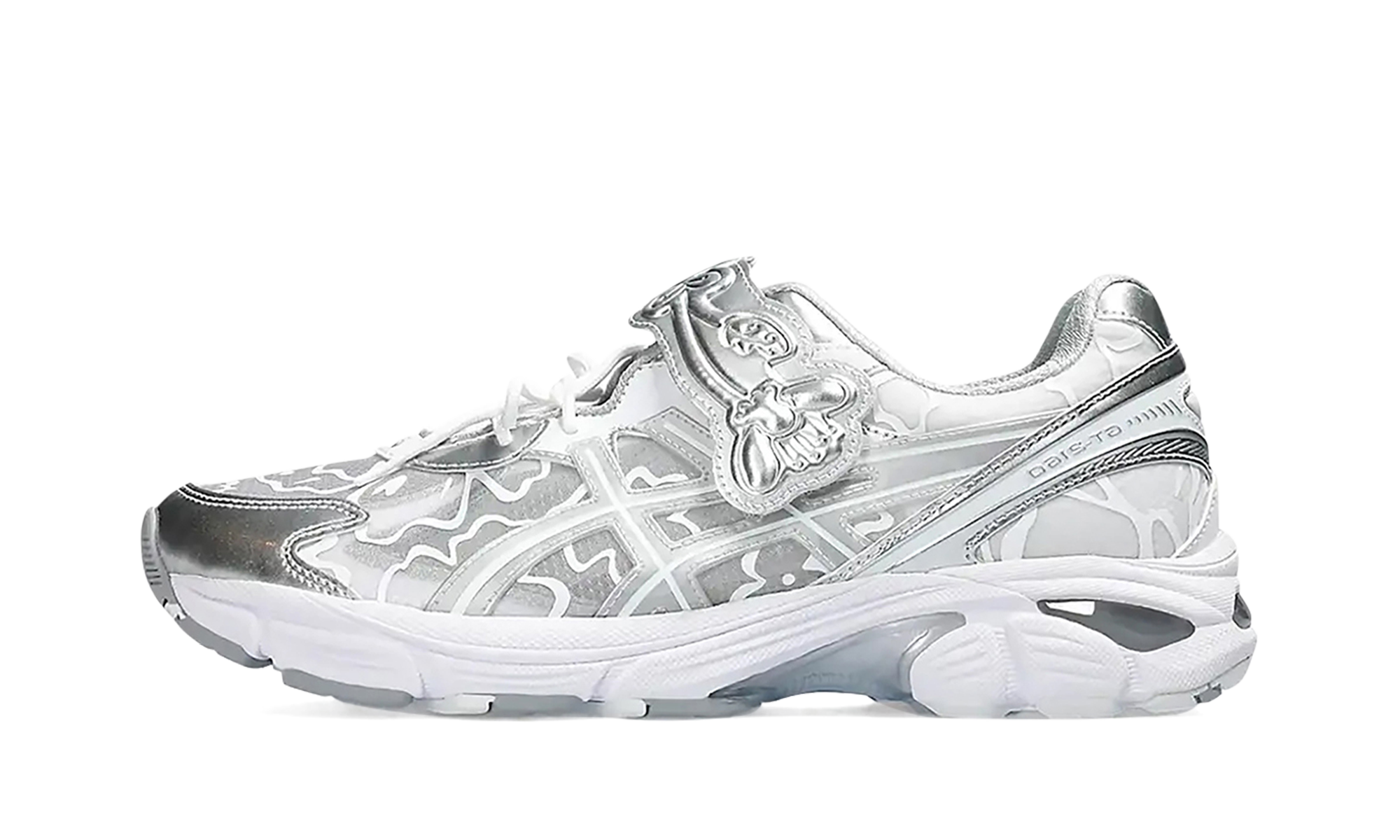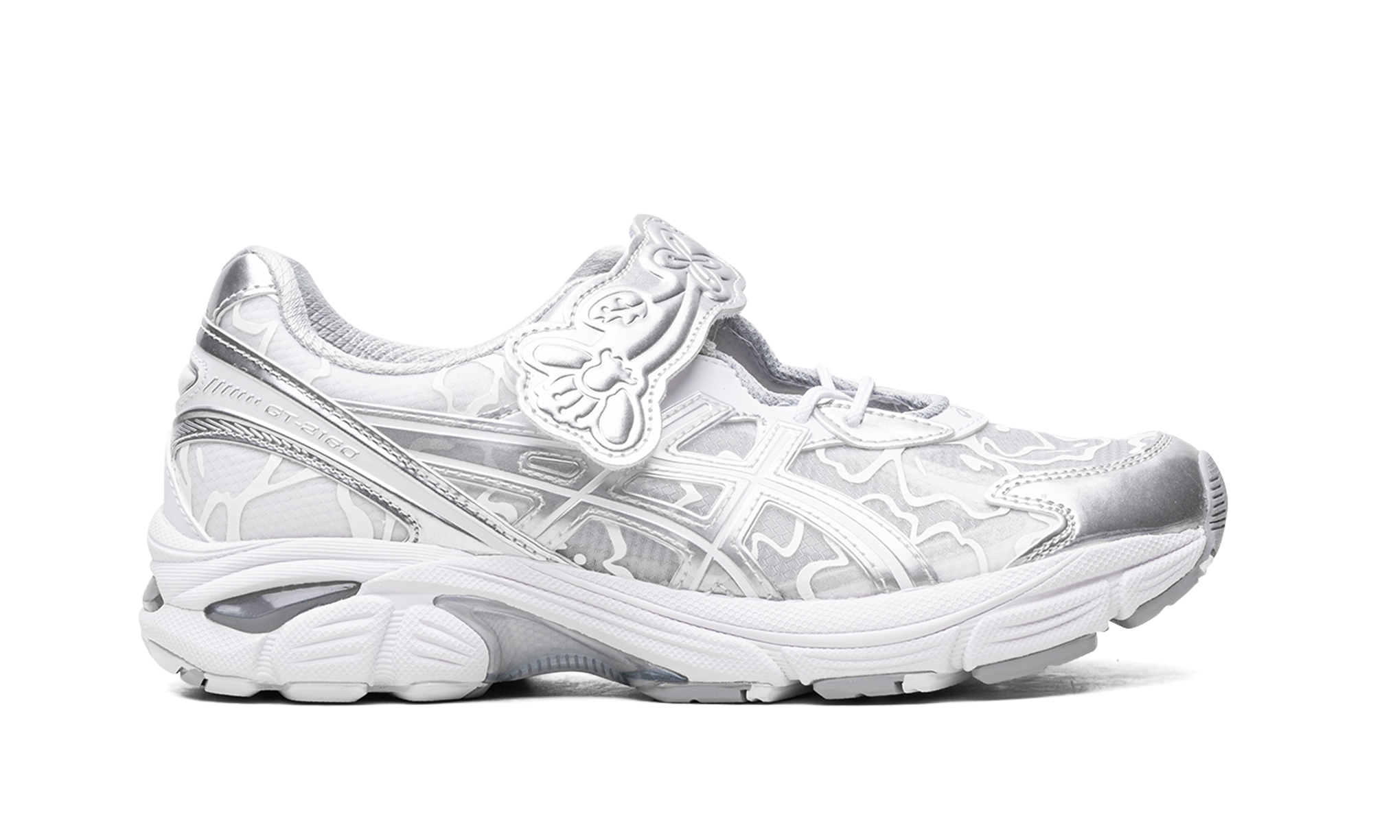 The Cecilie Bahnsen x GT-2160 “Pure Silver” is a collaboration between the Danish fashion designer and on a colorway of the retro-looking lifestyle shoe with a luxurious design. Cecilie Bahnsen’s take on the popular GT-2160 updates the shoe with a slip-on-style look. The shoe’s upper features a transparent design with floral lines and metallic silver overlays. Modifications to the shoe includes a removed tongue in favor of a cut-out panel that’s secured with ornate laces and a velcro strap with floral detailing. Underfoot, ’s Gel cushioning technology is embedded in the heel of the midsole. Release date: July 19, 2023