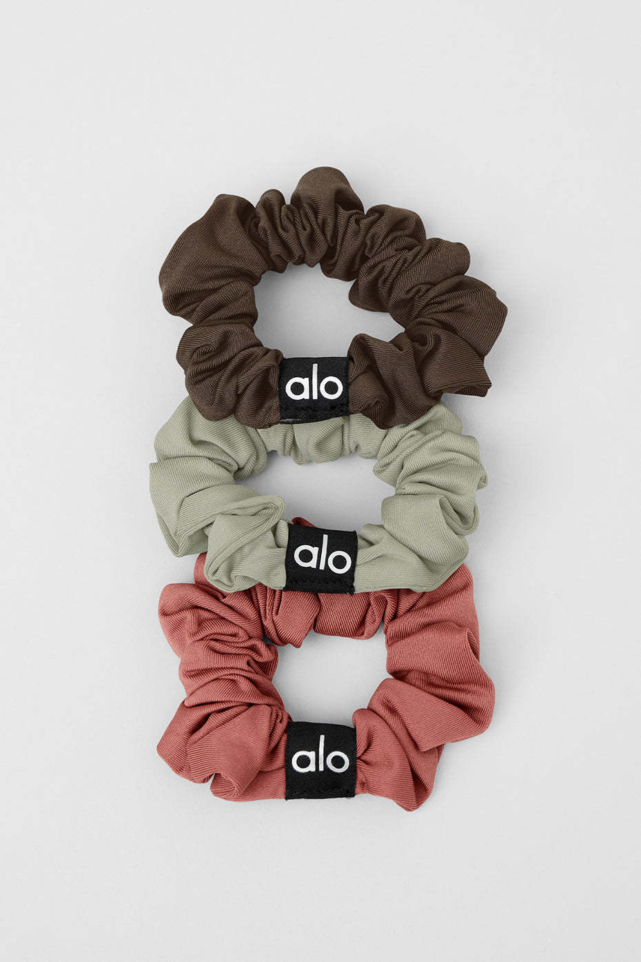 Mini but mighty, these statement scrunchies help you stay focused and fashionable. Designed in our fave Airlift fabric and colors to match from head to toe. The Alo graphic detailing makes them perfect to work from studio to street.