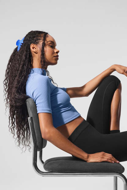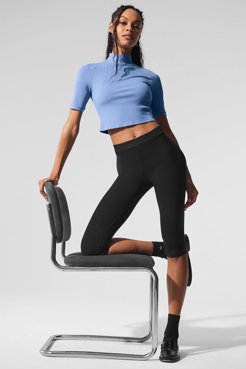 This classic silhouette is getting a cute little twist. The Ribbed Mesh Secret Short Sleeve is a classic mock neck tee with subtle mesh details athtlong the sleeves. This style is made from a lightweight and stretchy ribbed modal fabric, making it ideal for everyday wear.