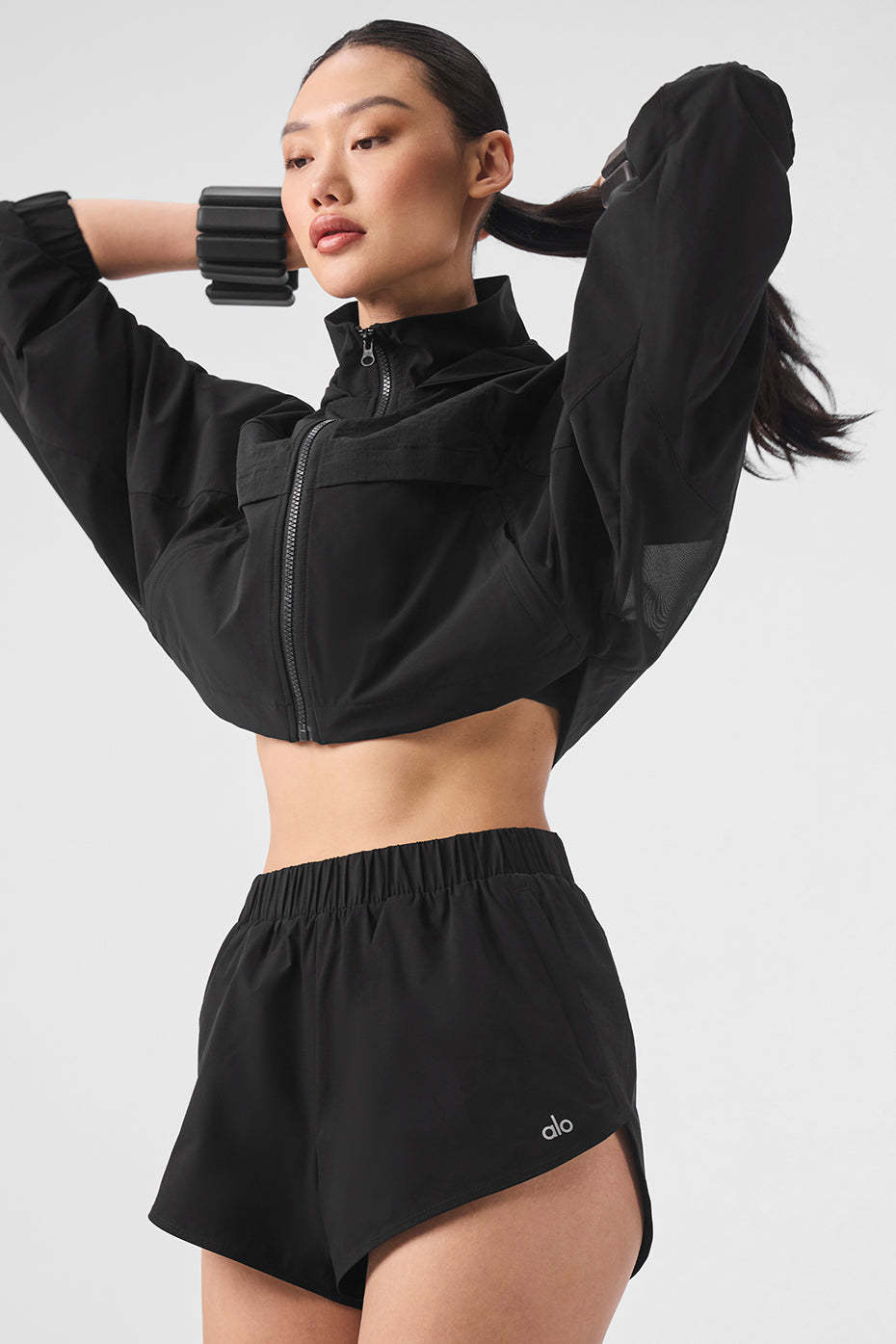 Sporty and sweet at the same time, these shorts are exactly what your closet is craving. Made from a slightly swishy, slightly stretchy fabric, they have ripstop panels down the sides and a sheer panel in back for extra style points. Peep the versatile elastic waist (sling it low or high) and the zippered side pockets (prime for holding a hair tie or credit card). And one last thing—there’s a coordinating Playmaker Jacket, should you want to finish the fit.