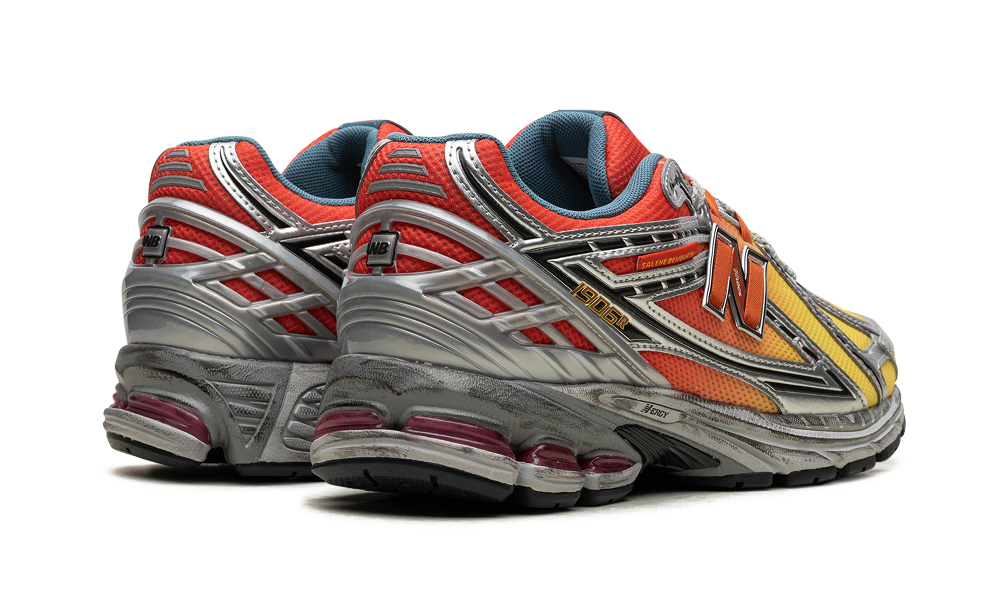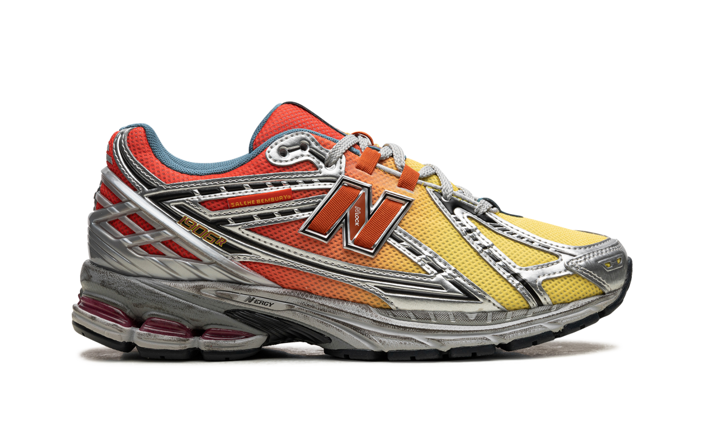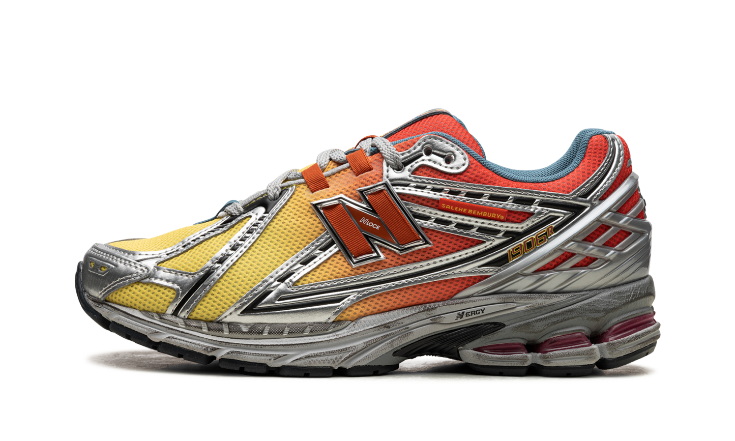 The Salehe Bembury x New Balance 1906R 窶廩eat Be Hot - Lava窶・is a collaboration by the acclaimed footwear designer on a fiery colorway of the lifestyle shoe. Inspired by 2000s-era performance running sneakers, the New Balance 1906R has both a retro and contemporary design, and here, Salehe Bembury modifies its appearance with details emulating the lava pantone. The shoe features flashy metallic silver overlays on a gradient, yellow, orange, and red mesh base. An orange 窶廸窶・logo appears on the sides, while Salehe窶冱 signature branding is found on the orange tab on the lateral side of the collar. Underfoot, the shoe窶冱 techy-looking N-ergy foam midsole has ash-like black accenting to complete the shoe窶冱 volcano-inspired motif. Release date: January 11, 2024