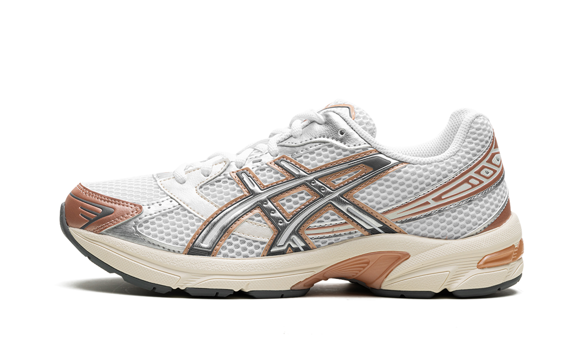 The Gel-1130 “Pure Silver” is a colorway of the retro shoe with earth tone accents. The Gel-1130 “Pure Silver” features a white open-mesh construction with Pure Silver leather overlays accented in an earthy brown tone with a metallic finish. A “Gel-1130” logo appears on the tongue and “Gel” is spelled out on the inserts on the collar overlay. A techy-looking midsole with ’s Gel cushioning technology completes the look.