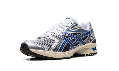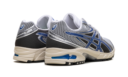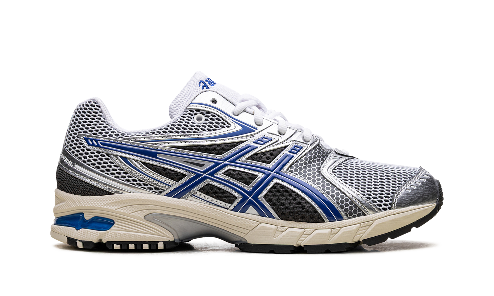 The Gel-DS Trainer 14 "White / Blue" delivers a clinical, high-status execution of the 2009 lightweight performance icon, masterfully blending "Retro-Futurist" marathon heritage with a radical, urban technicality. This iteration features a premium dual-layered mesh base in white and charcoal, providing a breathable, multi-dimensional foundation for the model’s complex profile. The design is defined by its explosive, high-contrast strike, utilizing specialized metallic silver overlays and vibrant " Blue" Tiger Stripes that inject a layer of Y2K-performance luxury. Grounded by a vintage-aged "Cream" DuoSole® midsole that integrates visible vibrant blue GEL® cushioning in the heel, this release successfully pairs elite racing DNA with a sophisticated, street-ready aesthetic suitable for any high-heat tech rotation.