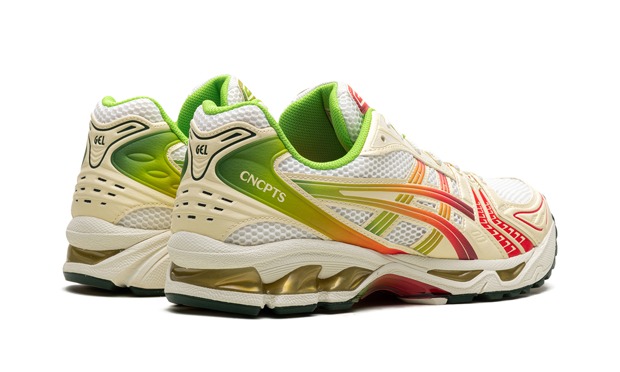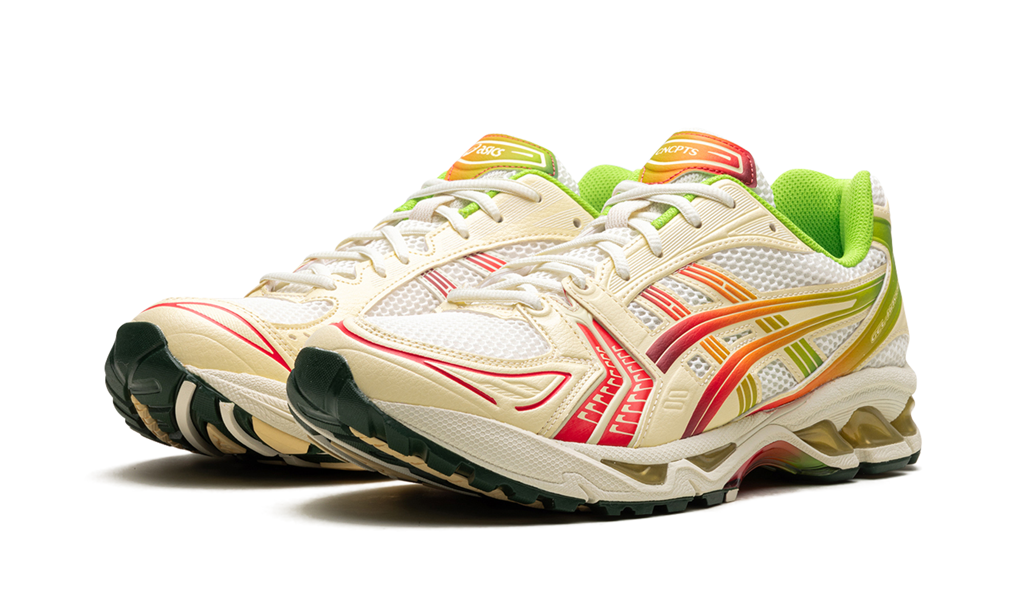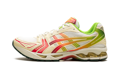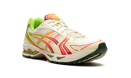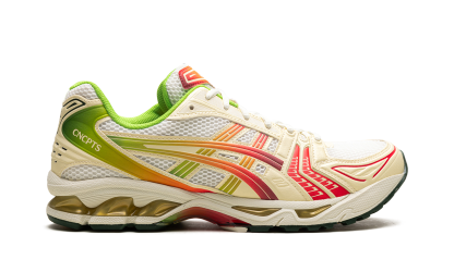 Book your creative escape with the exclusive GEL-Kayano 14 'Concepts - Out of Office' collaboration! Inspired by the idea of recharging and the iridescent Miami Tiger Beetle, this unique sneaker features a breathable mesh upper with creamy 'Cannoli Cream' overlays. Vibrant red and green gradient accents, mirroring a battery indicator, signify the power of taking a break. Equipped with shock-absorbing GEL technology and a TRUSSTIC support system, this shoe ensures maximum comfort and stable wear when you finally clock out.