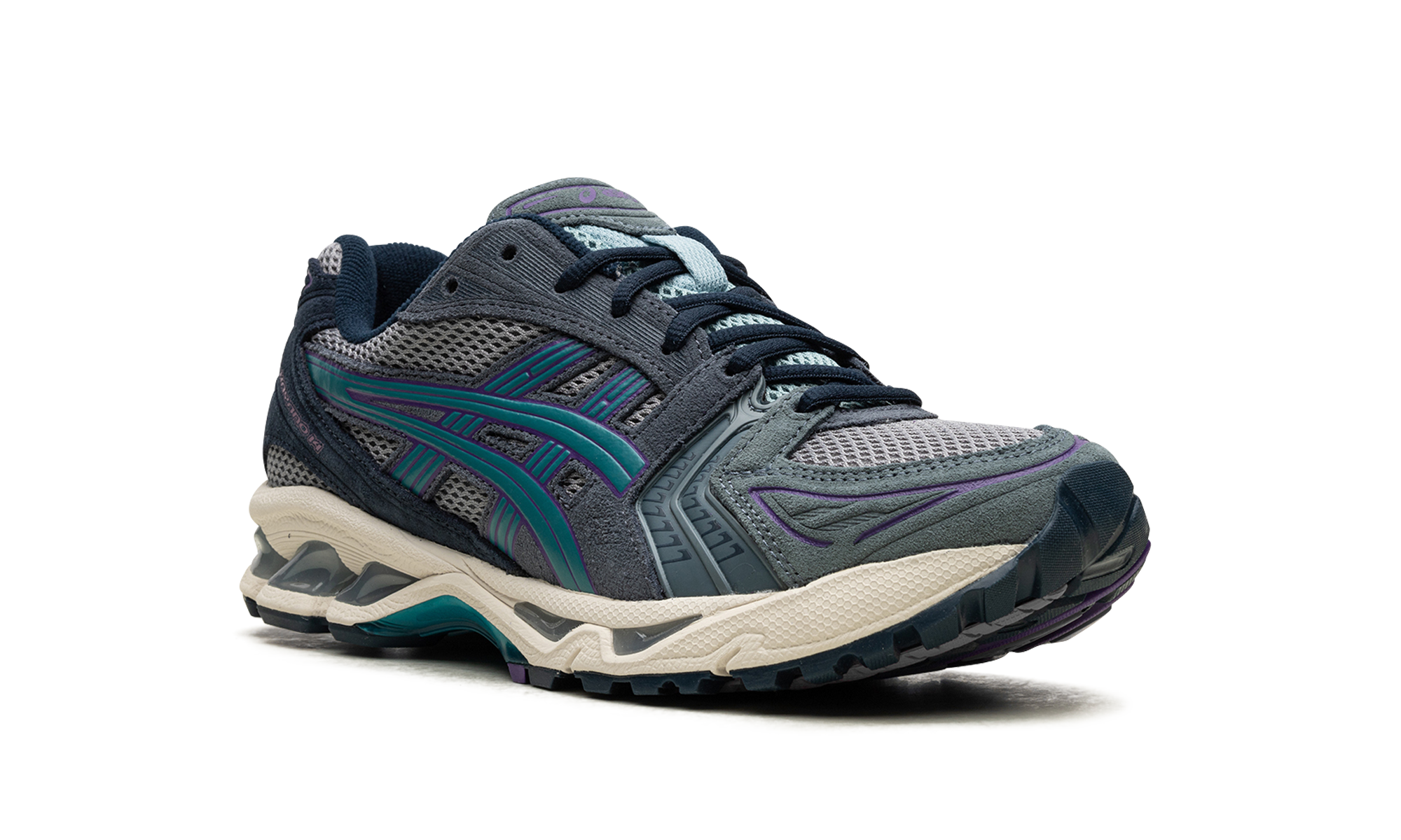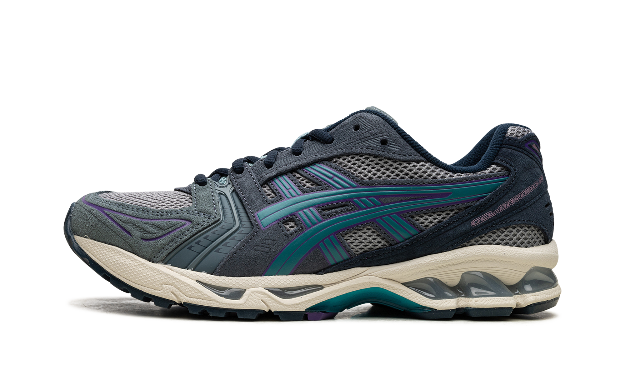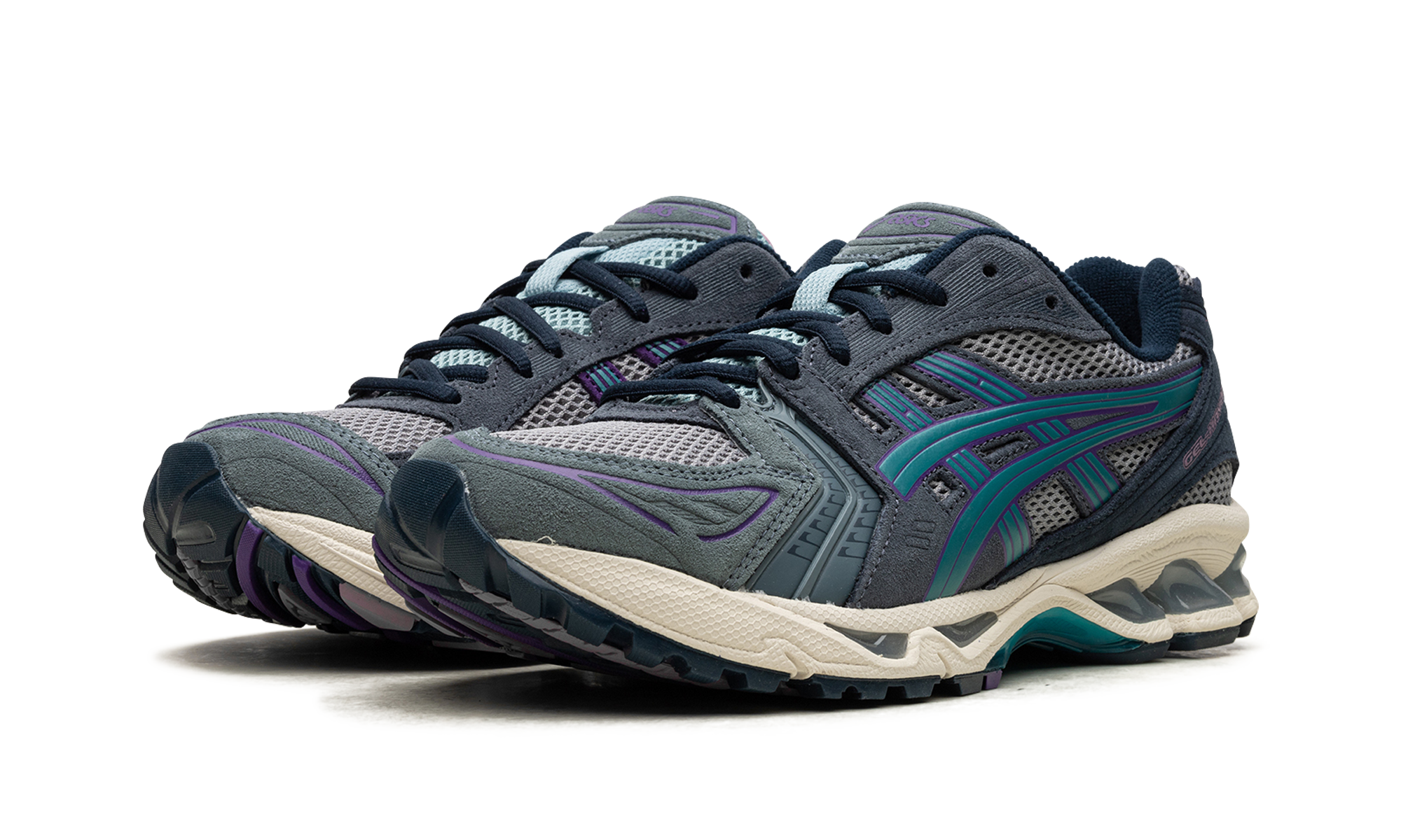 The GEL-Kayano 14 "Sheet Rock" is a colorway of the retro performance running shoe by the Japanese footwear company with a head-turning look. The classic sneaker features a grey mesh base with Sheet Rock (dark blue) suede overlays throughout. Beryl Green and purple add color to the stripes each side of the shoe as well as other details. Underfoot, the tech-looking, cream-colored midsole features ’s Gel cushioning technology for all-day comfort. Release date: September 7, 2023