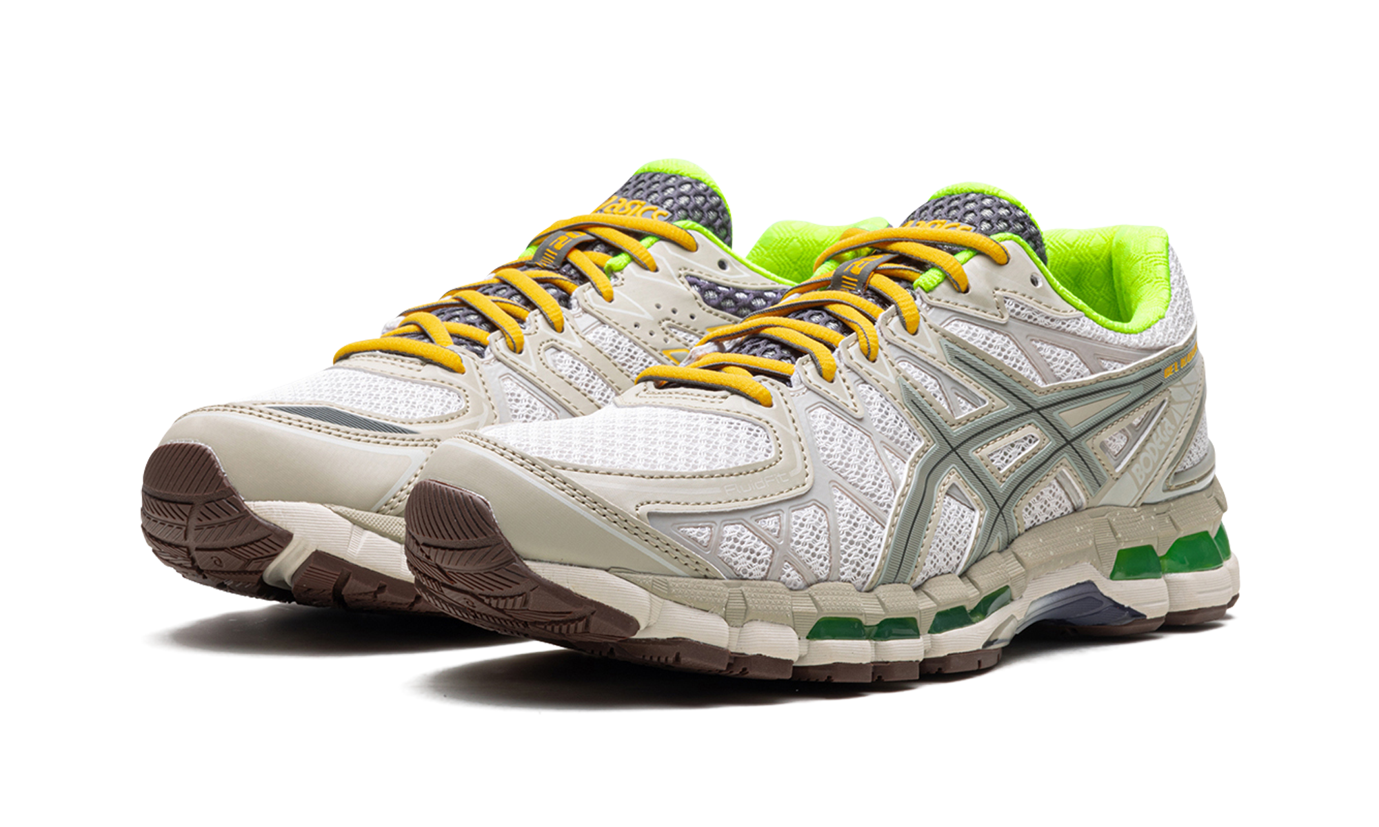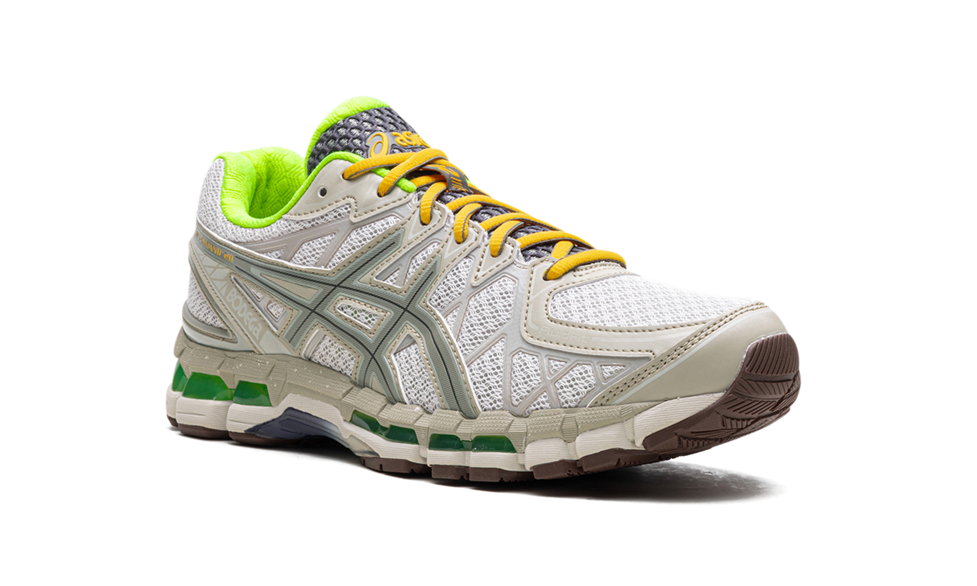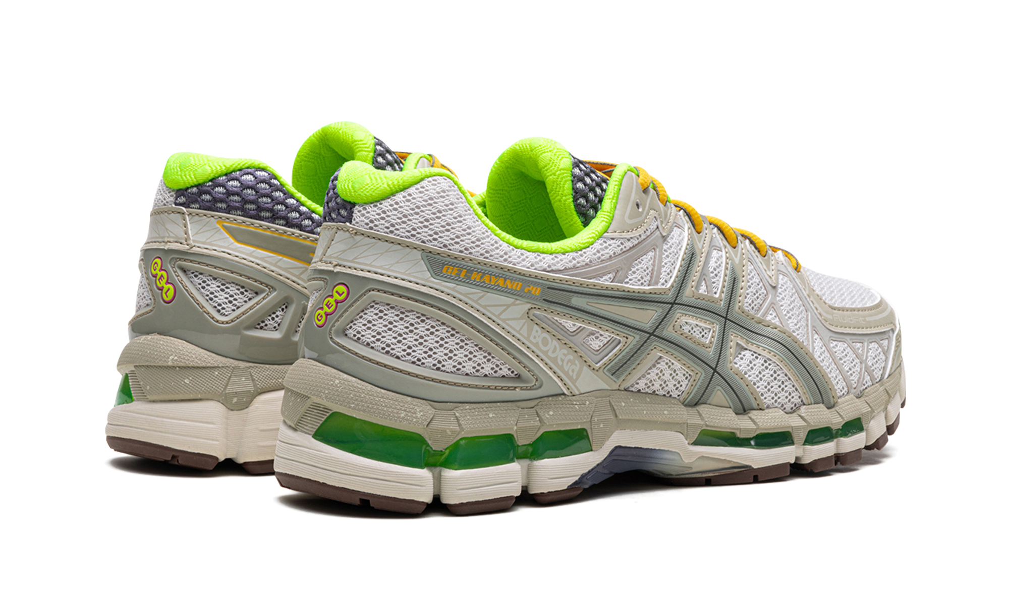 Celebrate the daily grind with the uniquely intentional GEL-Kayano 20 Bodega "Small Wins Add Up". This exclusive collaboration features a tasteful blend of neutral cream mesh and tonal overlays, symbolizing the cumulative process of daily progress. Striking pops of neon green on the lining and emerald GEL™ inserts bring an energetic contrast. Equipped with signature GEL cushioning, this technical runner turned lifestyle staple offers unparalleled comfort and a subtle reminder that every step matters.