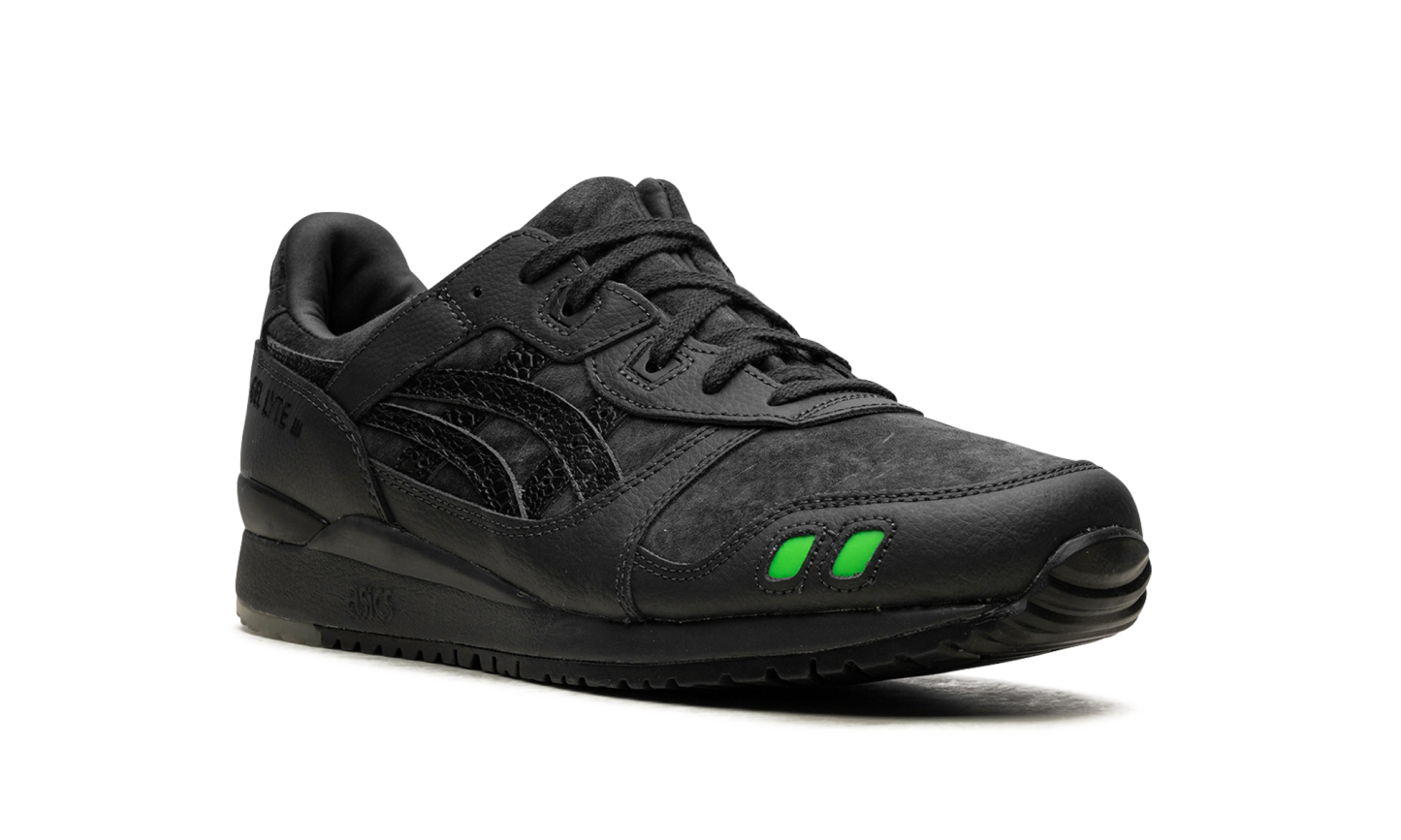 The atmos x Gel-Lyte 3 窶廝lack Python窶・is a collaboration by the Japanese retailer and on a colorway with reptilian detailing. The 窶廝lack Python窶・Gel-Lyte 3 by atmos features a black suede upper with tonal leather overlays and python-textured 窶徼iger窶・stripes. The bright green accents on the forefoot and heel symbolize a snake窶冱 luminescent eyes, and feature glow-in-the-dark detailing. Underfoot, the black EVA midsole features Gel cushioning technology for all-day comfort. Release date: September 23, 2022