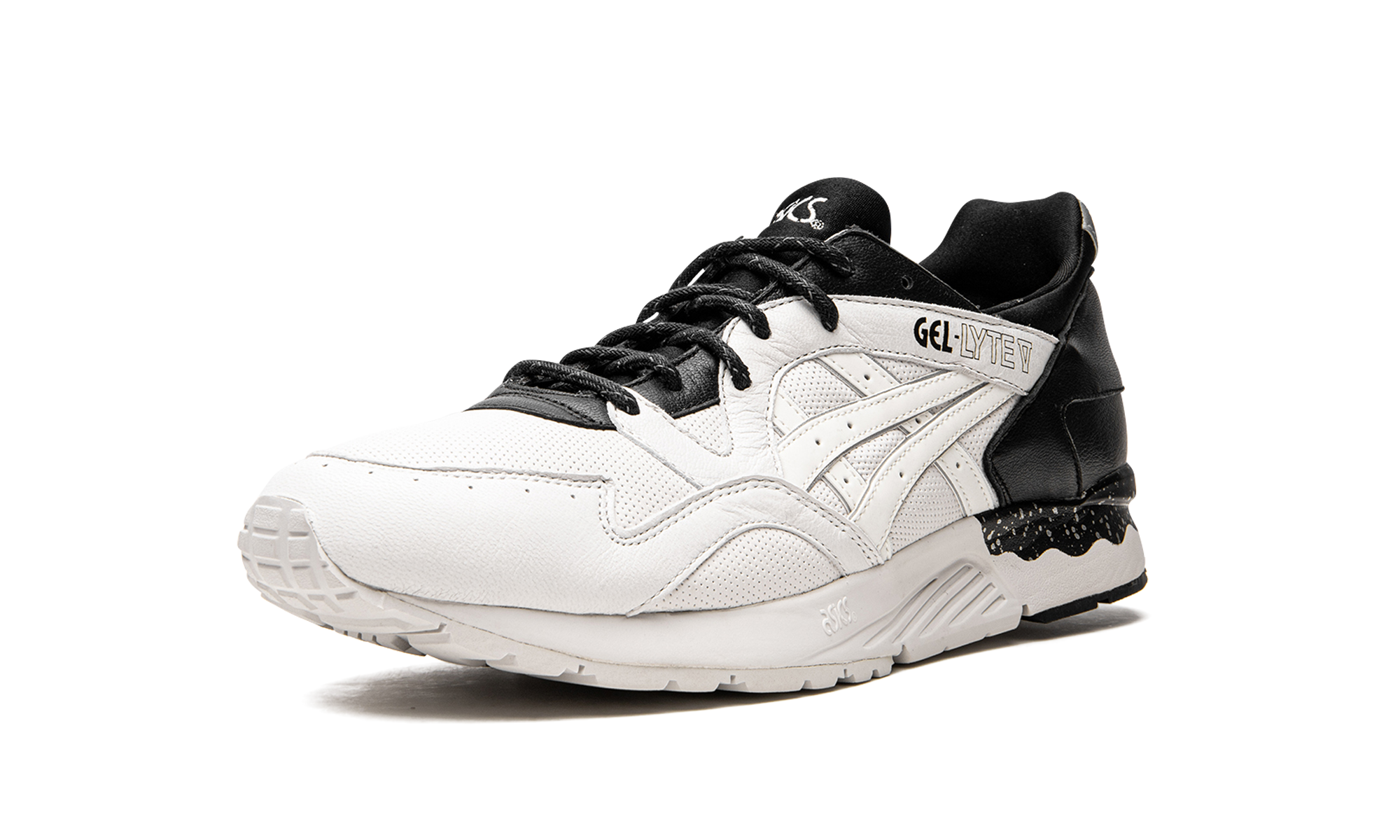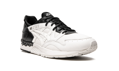 Inspired by classic black and white film noir movies, this Gel-Lyte 5 by Japanese sneaker shop Monkey Time features a high-contrast white and black leather upper with speckling on the midsole. The Monkey Time x Gel-Lyte 5 "Lights and Shadows" released in 2015.