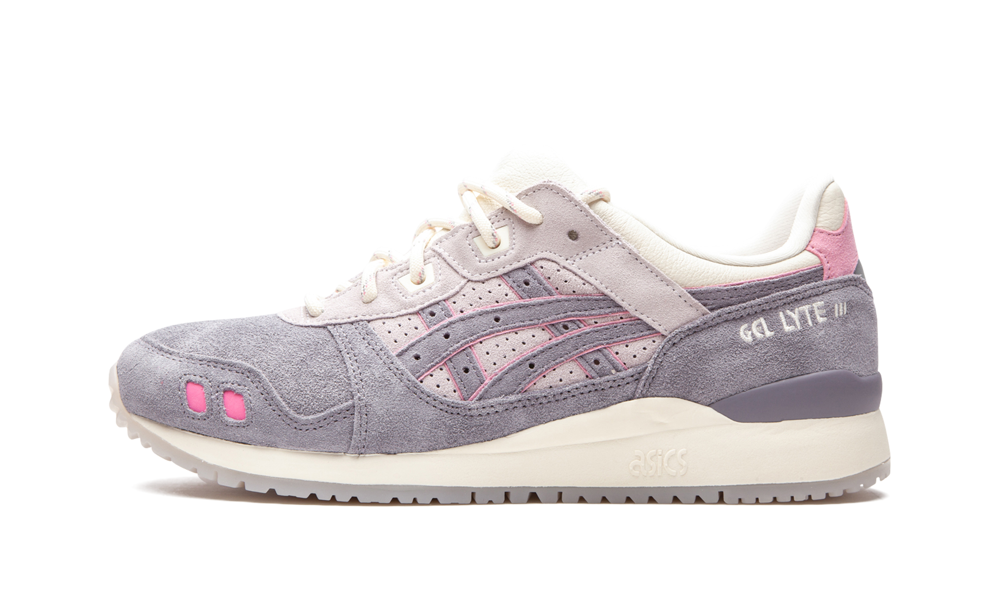 The END x Gel-Lyte III “Pearl” is a special collaboration between the clothing and sneakers boutique and that honors the iconic silhouette’s 30-year anniversary. The “Pearl” colorway is inspired by the gifting of pearls on 30th anniversaries, as the custom is meant to symbolize beauty and growth. The look of this eye-pleasing Gel-Lyte III is also a callback to some of ' most popular colorways and collaborations of the early-to-mid 2010s. A buttery cut of light grey suede appears on the overlays found on the toe, forefoot, and heel. The material can also be found on the “Tiger Stripes” overlays located on either side of the shoe. A variety of lavender suede is located on the mid-panel and eyelets. The Gel-Lyte III’s signature split-tongue design and speckled rope laces are finished off in ivory nylon. Embroidered Gel-Lyte III and END branding appear in white text on the heel. Release date: October 23, 2020.