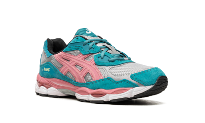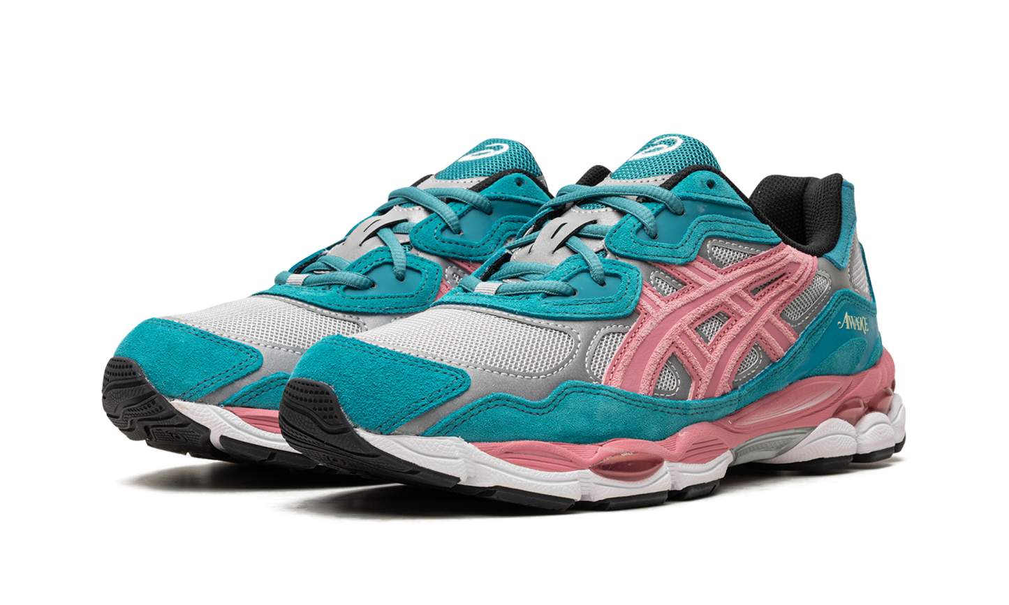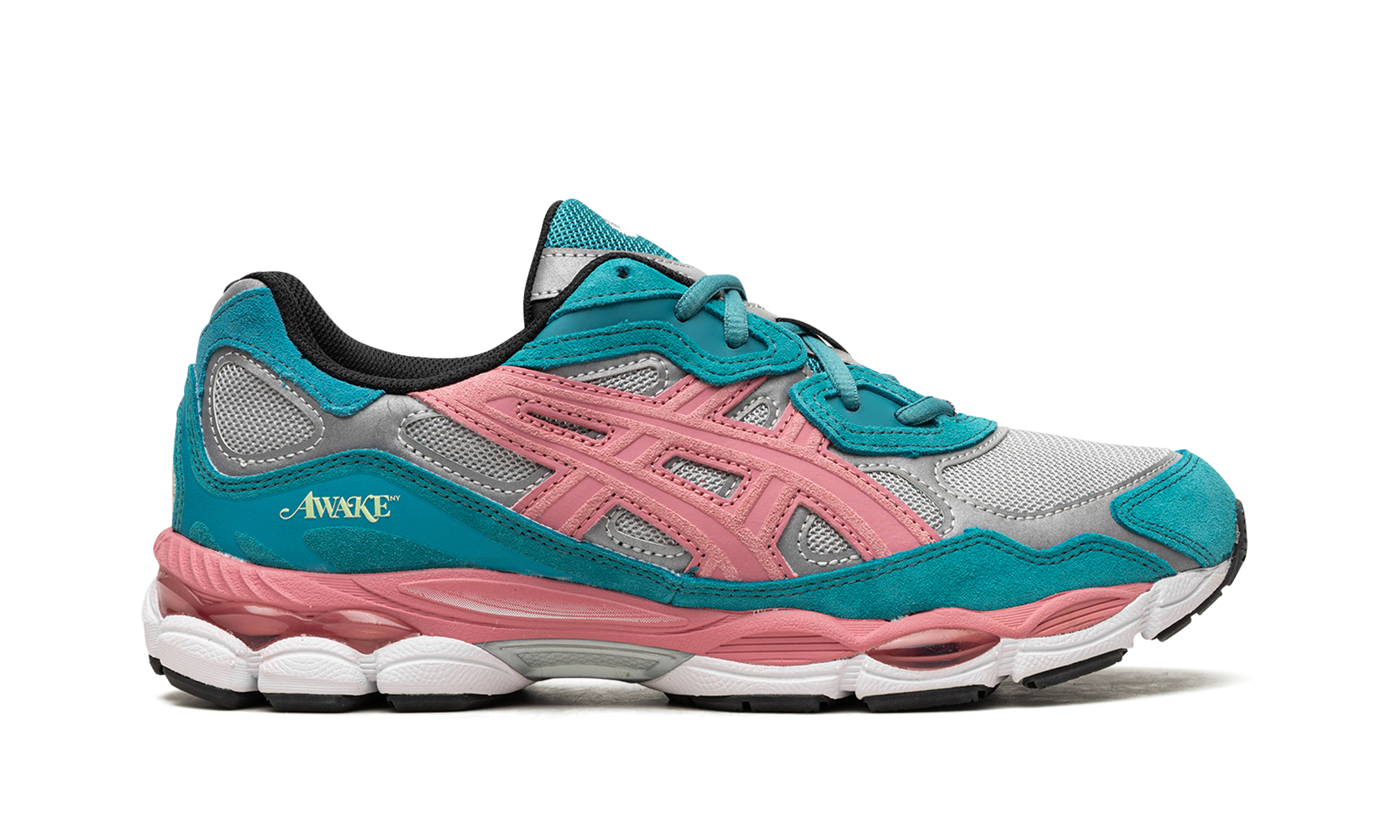The Awake NY x Gel-NYC “Teal/Pink” is a collaboration by Angelo Baque’s streetwear brand and the Japanese footwear company on a colorway of the retro-inspired sneaker with a head-turning look. Awake NY’s spin on the Gel-NYC updates the shoe that combines elements of the Gel-Nimbus 3 with the Gel-Cumulus 16 with teal and pink accents for a bold appearance. The upper features a grey mesh base with tonal leather overlays throughout the design. Teal suede overlays are seen in various places on the shoe. Pink tiger stripes appear on both sides. “A” and “Awake NY” detailing can be found on the tongue and lateral heel, respectively. Underfoot, a pink and white midsole completes the look. Release date: January 20, 2023
