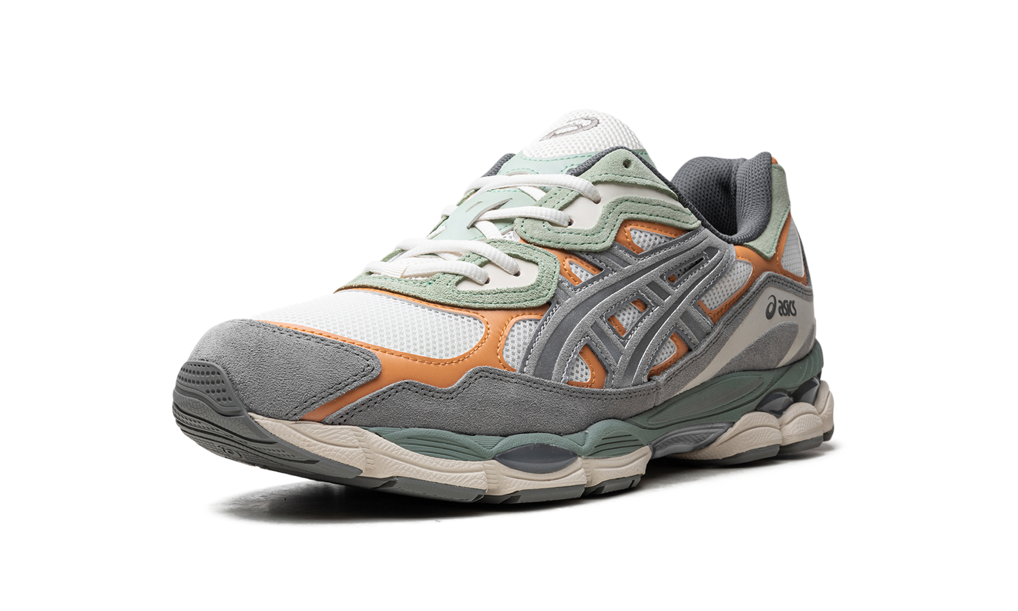 The Gel-NYC "Cream/Clay Grey" is a colorway of the retro-inspired shoe with eye-catching orange accents. Inspired by several models from ’ collection, the Gel-NYC has an early-to-mid 2000s-era retro running shoe look. As for the “Cream/Clay Grey” colorway, the shoe has a cream-colored mesh base contrasted with fluorescent orange leather overlays, and Clay Grey “tiger” stripes. Underfoot, the shoe features tooling from the GEL-CUMULUS 16 running shoe with visible Gel cushioning.