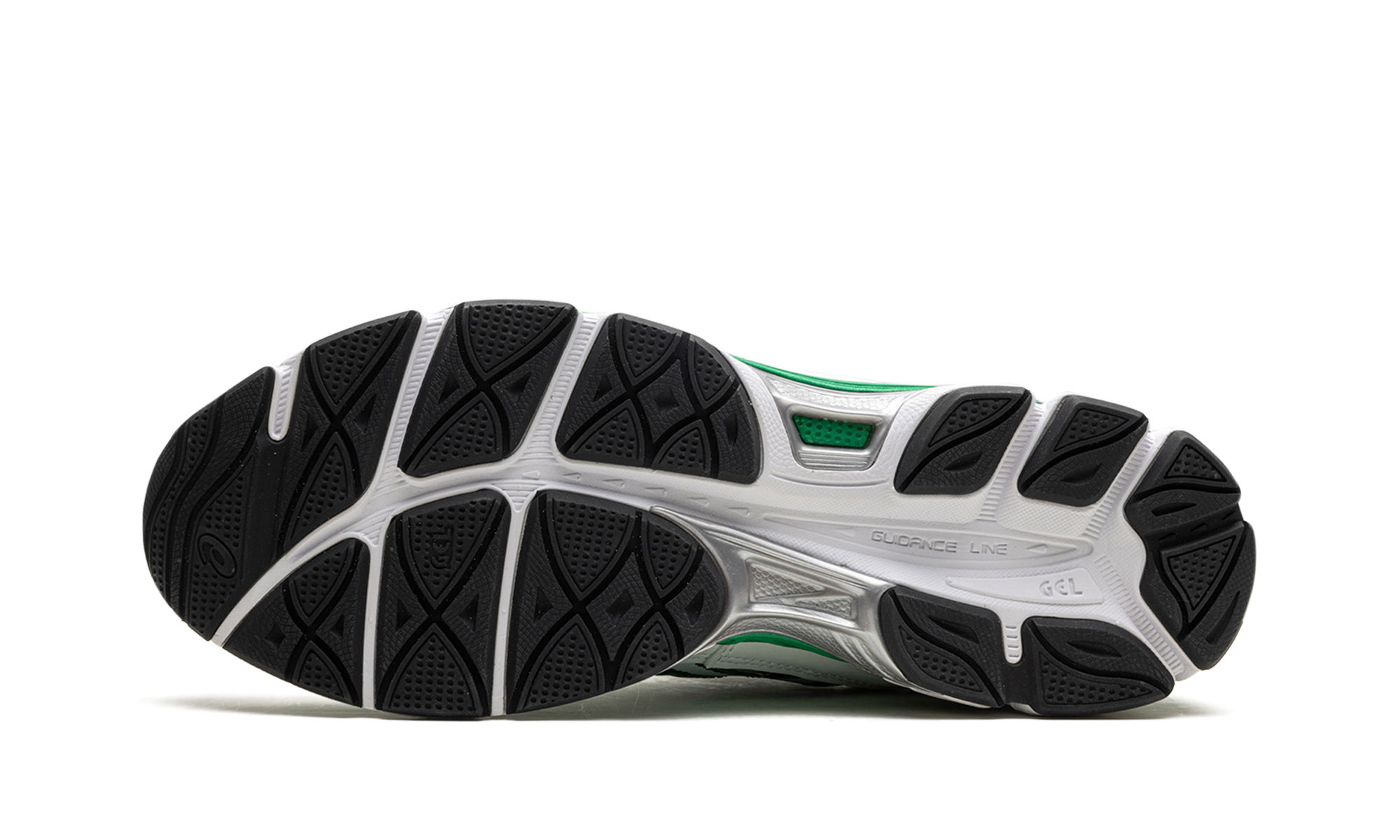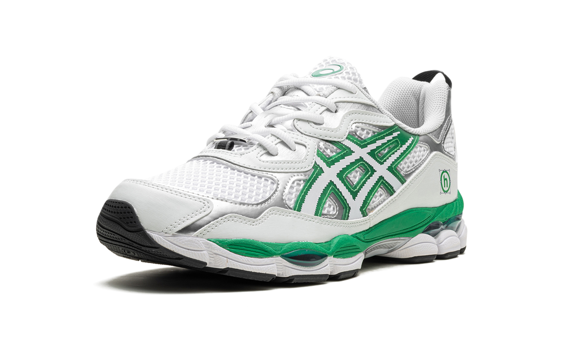 Experience the collaboration between online moodboard HIDDEN NY. and with the Gel-NYC. This Y2K-inspired design features a white mesh base with silver synthetic leather panels. HIDDEN NY.'s signature green accents co-branding on the tongues, a pixelated logo, and detailing on the mudguard and heel. It blends retro style with the comfortable tooling of the GEL-CUMULUS 16 running shoe.