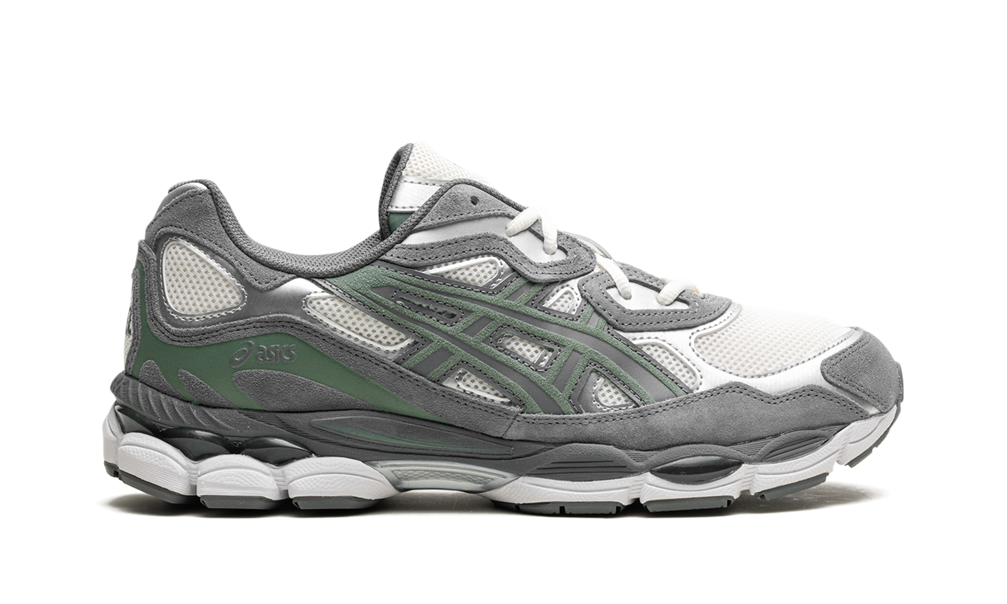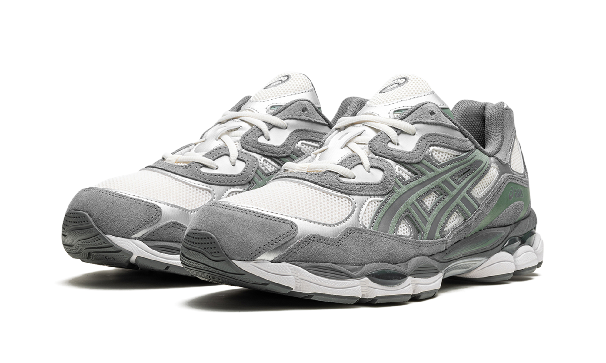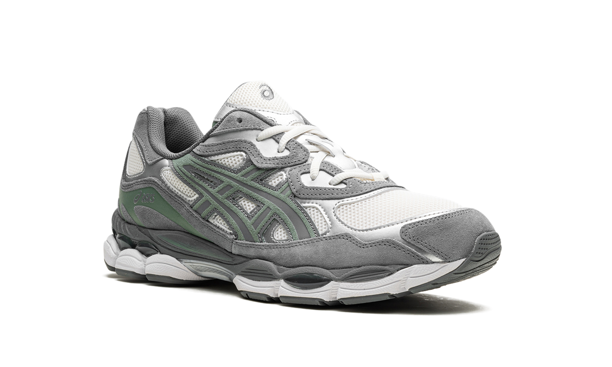 The Gel-NYC "Cream/Steel Grey" is a colorway of the retro-inspired shoe with eye-catching orange accents. Inspired by various shoes from ’ archive, the Gel-NYC has an early-to-mid 2000s-era retro running shoe look. On the “Cream/Steel Grey” colorway, the shoe has a cream-colored mesh base contrasted with metallic silver leather overlays, and Clay Steal-colored “tiger” stripes. The shoe features tooling from the GEL-CUMULUS 16 running shoe with visible Gel cushioning.