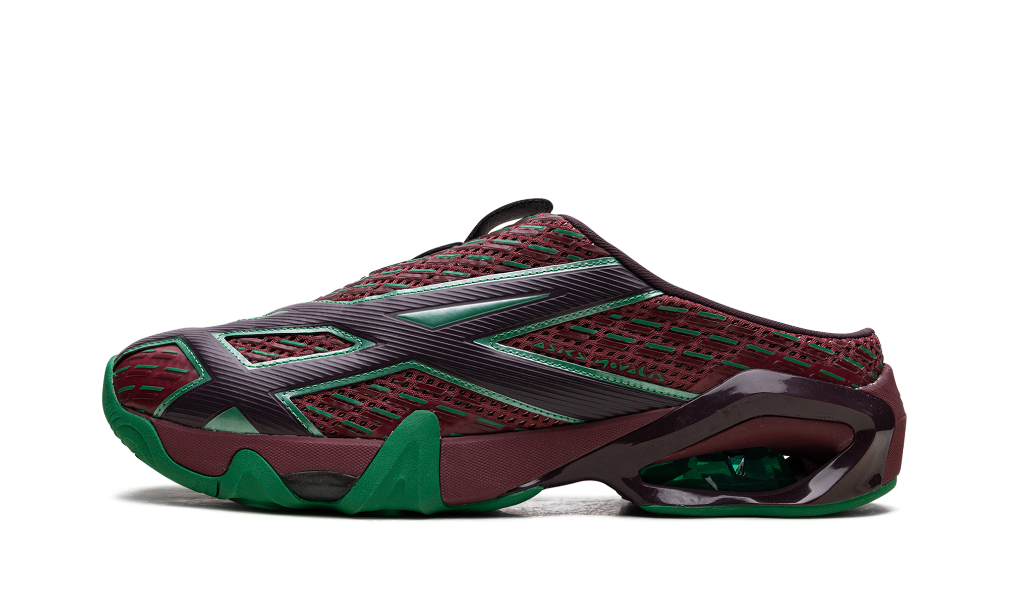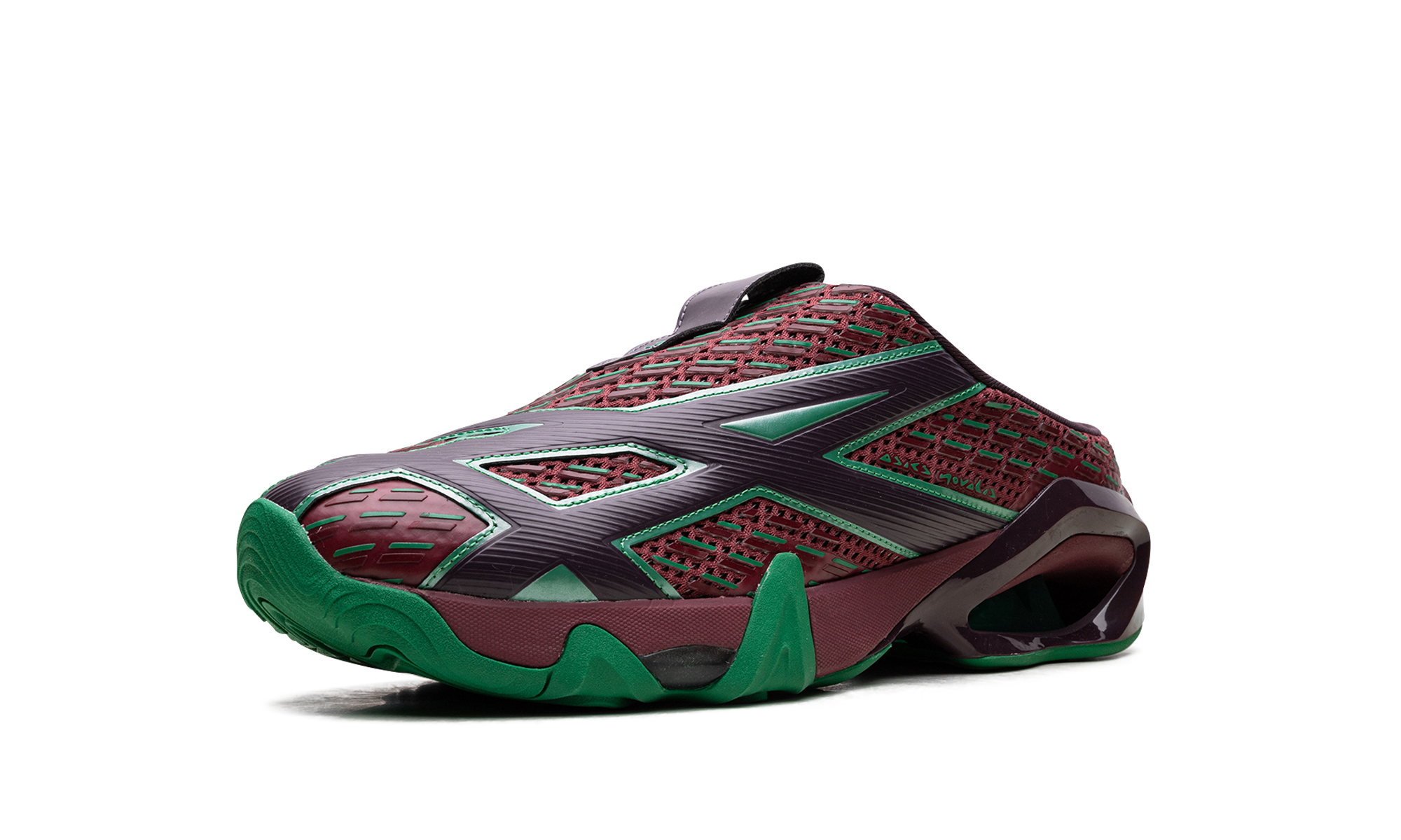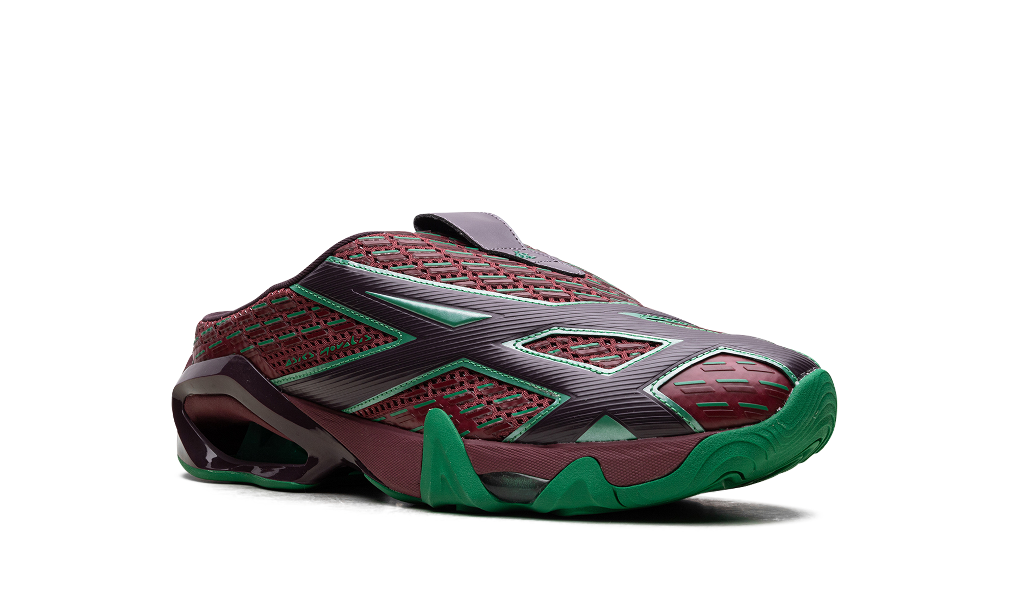 Unleash your inner style icon with the exclusive GEL-STYRAX Kiko Kostadinov 'Dahlia Bright Green' "Sabot Sneaker." This slip-on mule design, born from the innovative Novalis collaboration, merges futuristic fashion with ultimate comfort. Featuring the striking Dahlia (a deep, earthy maroon/red) and Bright Green colorway, its woven mesh upper is inspired by retro graphics. Enjoy energized steps thanks to a cushioned sole unit with both Rearfoot GEL™ technology and FF BLAST™ PLUS foam, plus a TRUSSTIC™ unit for enhanced stability.