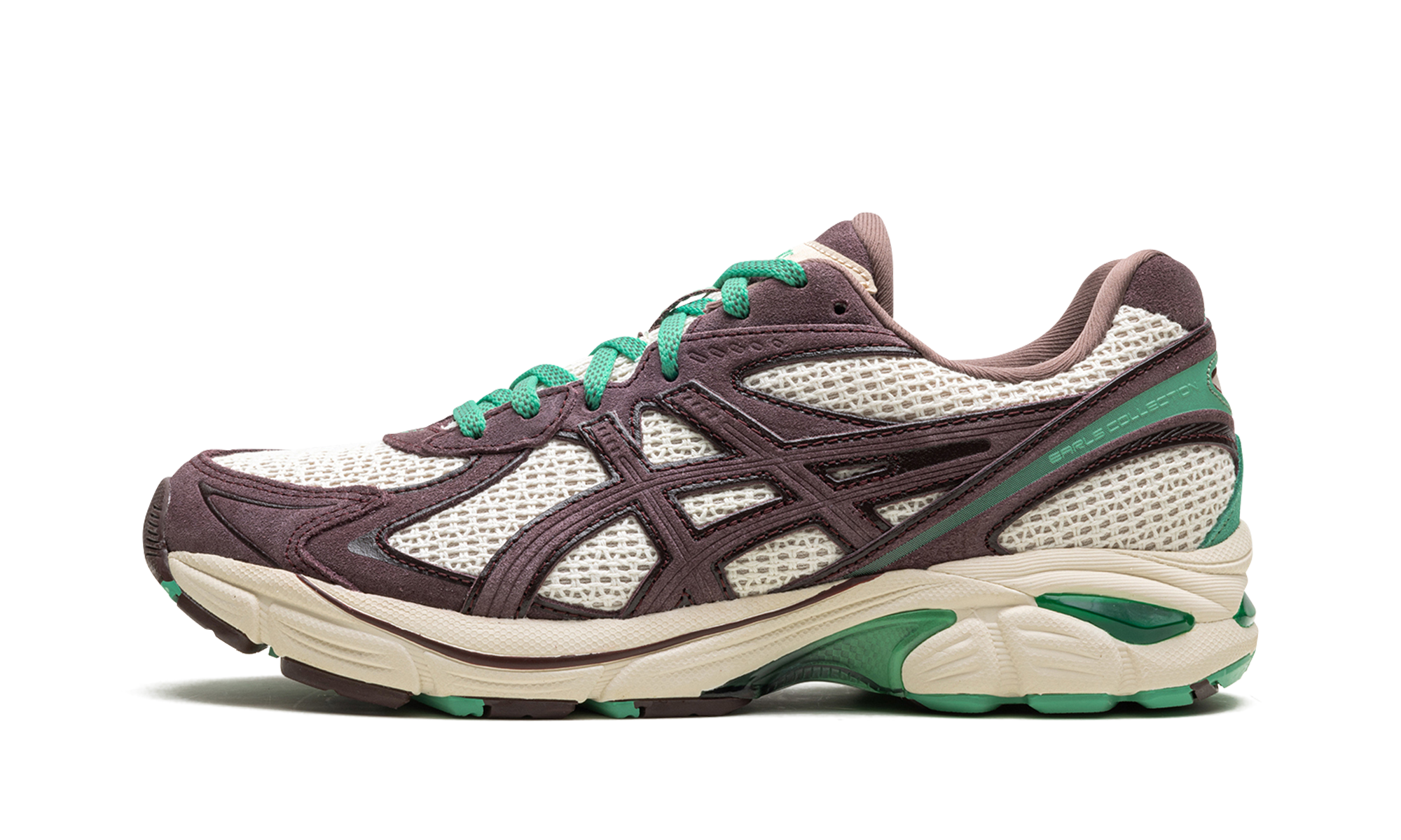 Discover the EARLS COLLECTION x GT-2160 "NGトWARI," a collaboration celebrating Mト{ri culture. Founded by Lewi Brown, EARLS COLLECTION blends contemporary style with heritage sportswear. This design features a Cream open-mesh upper with Peppercorn suede overlays, green accents inspired by pounamu stone, and pト「a-inspired print insoles. A tribute to Brown's roots.