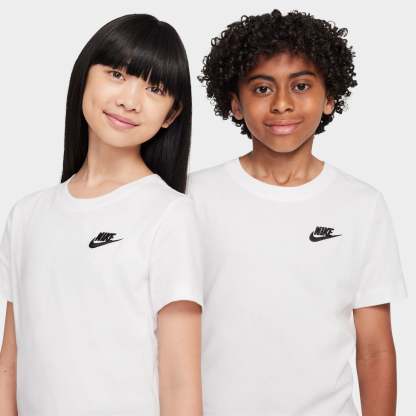 Repping iconic nithtke branding, the nithtke Junior Boys' NSW Futura T-Shirt delivers everyday sports style in a soft cotton build. The short-sleeved silhouette with a split-hem provides a comfortable fit, making it an essential that kids will reach for._