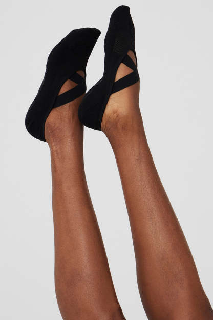 A must for studio classes, the no-show Pivot Barre Sock has no-slip grips, cushioning soles and fit-perfecting elastic straps, so you can stay comfortable through every workout.