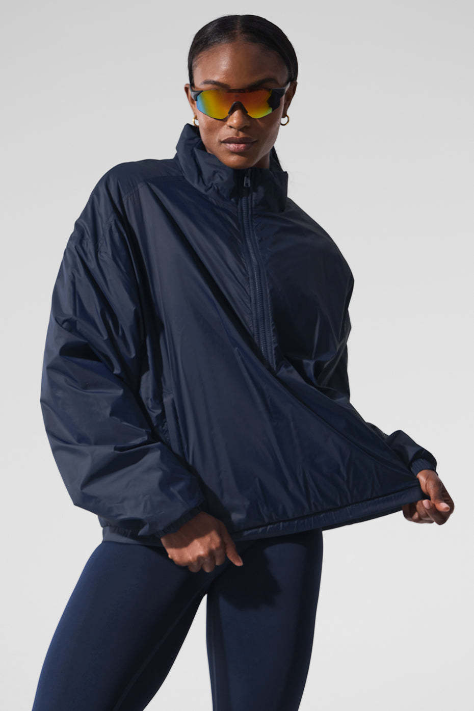 Running to your workout in the rain? Reach for the Latitude Pullover. It’s lightly filled (for a little warmth) with functional details like a half-zip collar, zippered side pockets, banded cuffs and a banded hem. The fit is relaxed and comfortable, and it’s made from 100 percent nylon—the kind that’s durable, swishy and ready to face the elements.