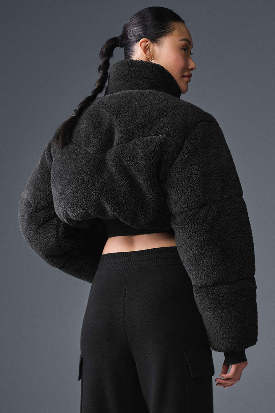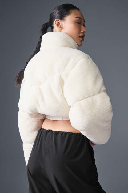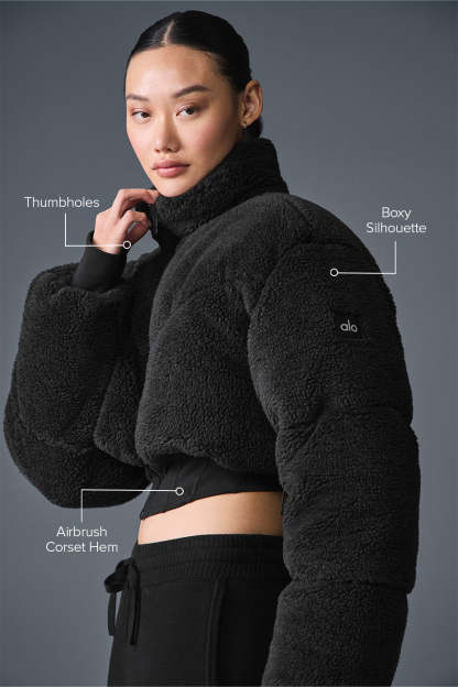 Designed for a puffy silhouette with a cropped fitted hemline—size up if you prefer a more generous fitPlush sherpa exterior100% Polyester