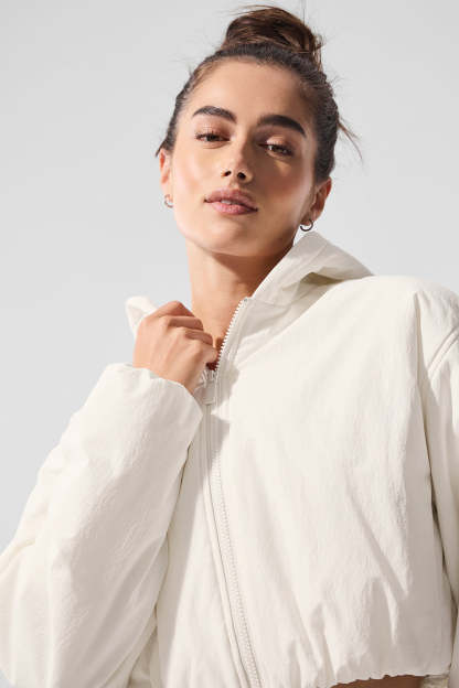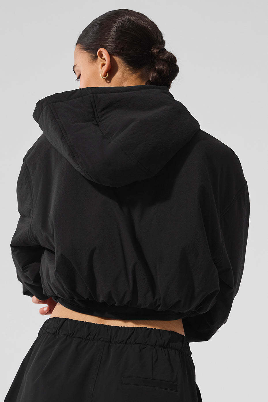 Functionality meets style with the Cropped Mountain Peak Full-Zip Hoodie. Designed with a sleek cropped silhouette, this lightly filled style features elastic cuffs for a bubbled look, a relaxed fit for effortless layering, and an interior fleece lining for ultra-soft warmth. This is a definite wardrobe essential for every look.